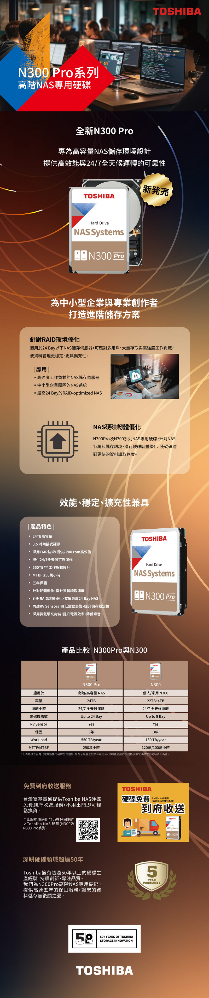 Toshiba 是全球領先研發出MR head及PRML讀取信道技術的硬碟廠商。 2004年,Toshiba 推出全球首顆2.5吋 SATA硬碟。 2005年,在其他硬碟廠商無法全力支援各大系統業者及伺服器廠商的SAS系統的同時,Toshiba推出全球首顆SFF SAS硬碟。